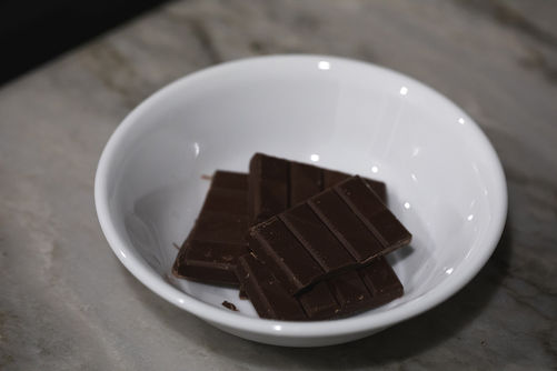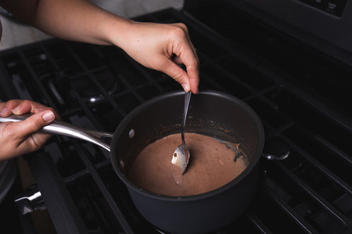 2) While the milk is heating, place the chopped chocolate in the microwave and heat for 30 seconds. Take the chocolate out and stir it. Return to microwave and heat for another thirty seconds, remove and stir. Continue to heat and stir the chocolate in 30-second intervals until just barely melted.